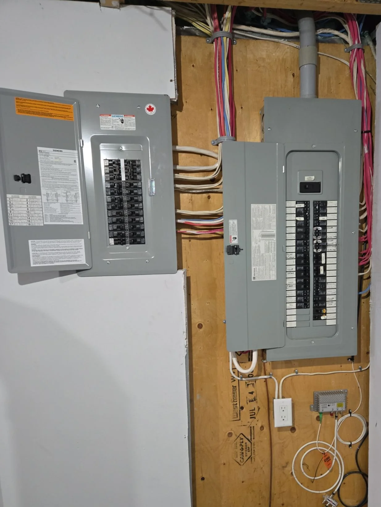 Installation de nouveaux panneaux électriques avec disjoncteurs modernes